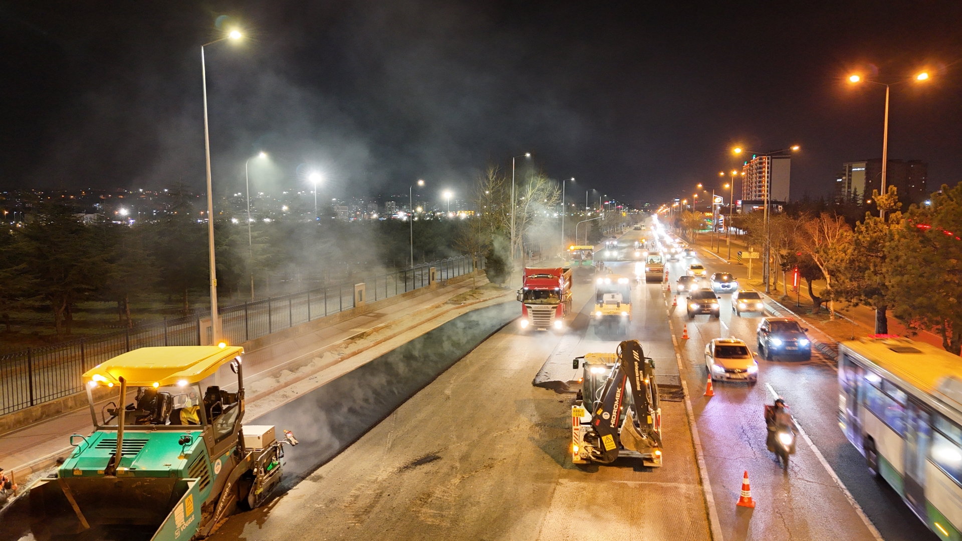 Kayseri Büyükşehir Belediyesi’nin Talas Bulvarı’nda yürüttüğü yol genişletme ve asfalt serim çalışmaları gece gündüz süren yoğun mesainin ardından tamamlandı. Büyükşehir Belediye Başkanı Dr. Memduh Büyükkılıç, çalışmaları sahada inceleyerek, 6 bin 500 ton asfalt kullanılan ve yaklaşık 50 milyon TL’lik yatırımla hayata geçirilen yolun araç trafiğine açıldığını açıkladı.