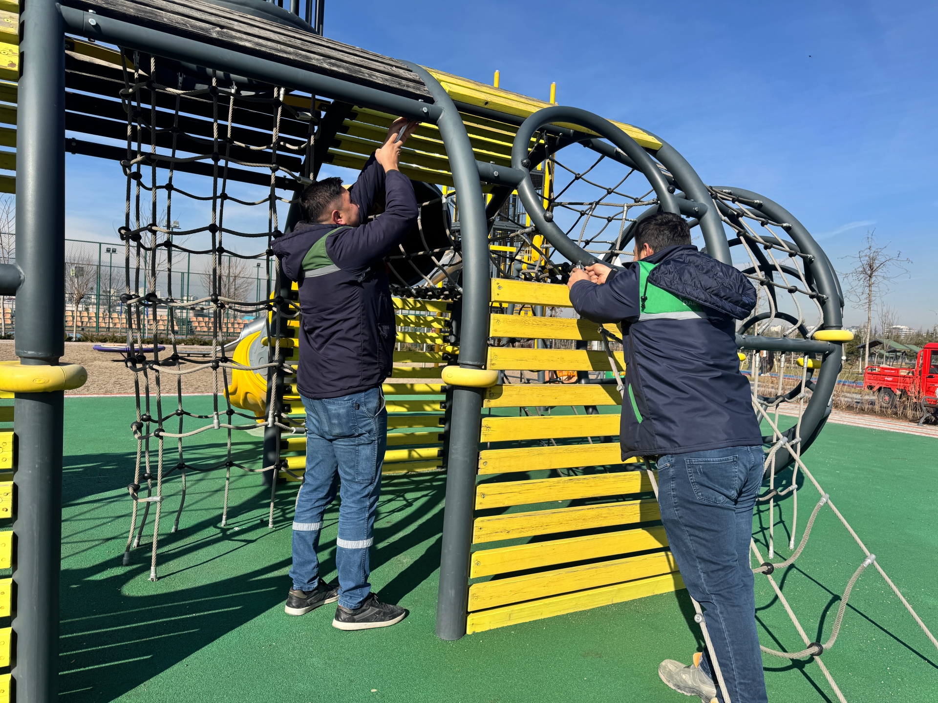 Ayrıca biyolojik gölette temizlik ve bakım çalışmaları titizlikle sürdürülürken, çocuk oyun grupları ve spor alanlarında bakım ve onarım faaliyetleri yapılıyor. Ağaç budama çalışmalarıyla yeşil dokunun korunması sağlanırken, kamelya ve bankların tamiratı da tamamlanarak vatandaşların kullanımına daha güvenli ve konforlu alanlar sunuluyor.