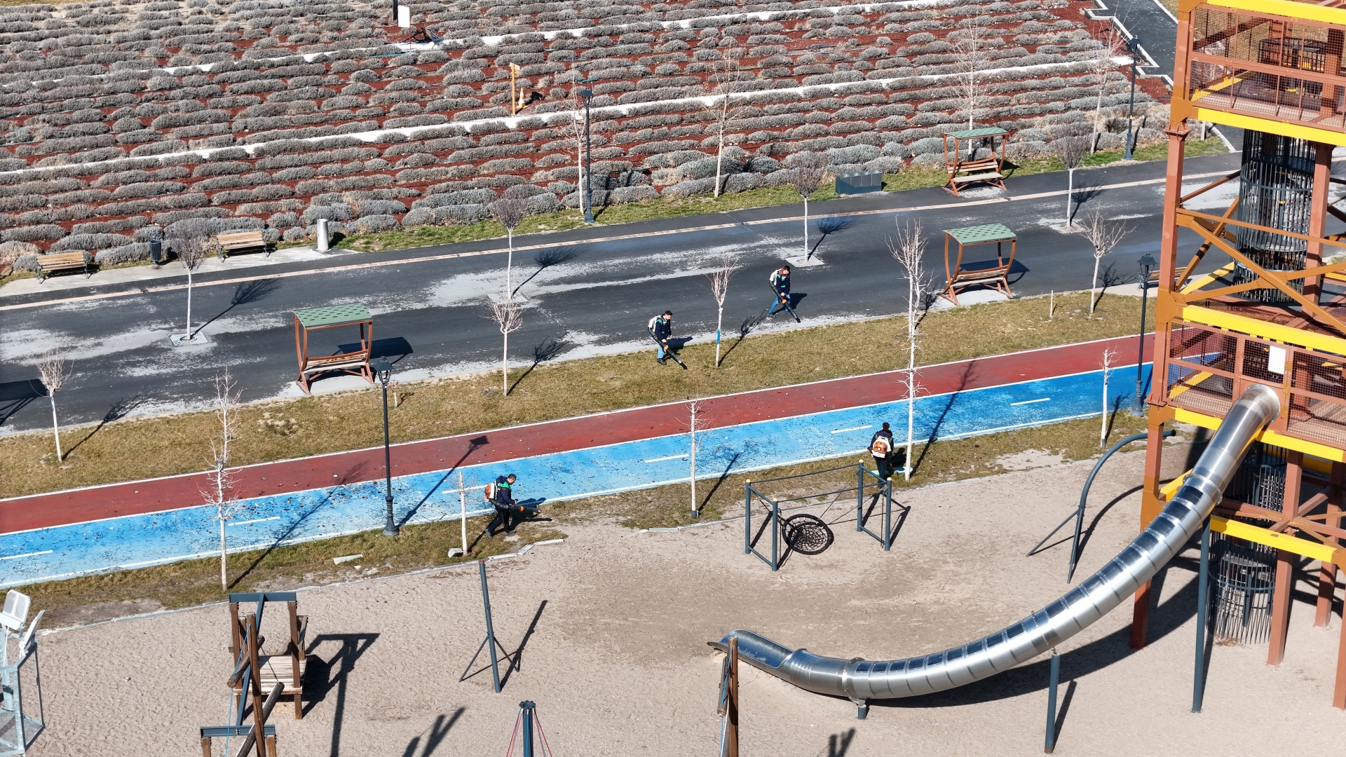 Kayseri Büyükşehir Belediye Başkanı Dr. Memduh Büyükkılıç’ın vizyonuyla hayata geçirilen ve şehrin nefes alan projeleri arasında yer alan millet bahçesinde, Park ve Bahçeler Daire Başkanlığı ekipleri tarafından yürüyüş yolları, koşu ve bisiklet parkurları ile yeşil alanlarda detaylı temizlik çalışmaları gerçekleştiriliyor.